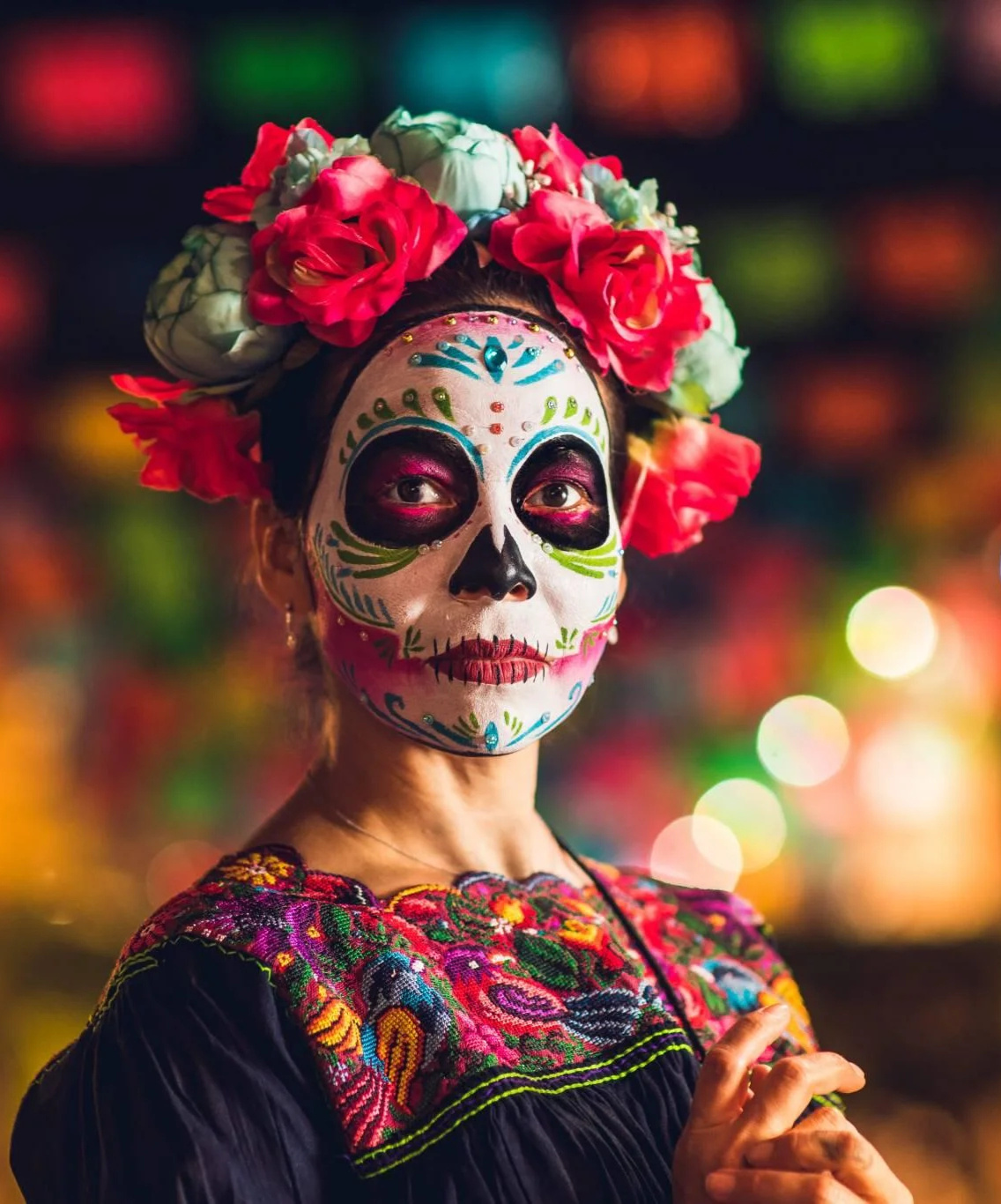 During Día de los Muertos, you often see faces painted to resemble skulls. For those unfamiliar, this might seem strange and even scary. However, the skull has a uniquely positive meaning: it provides opportunities for families and friends to gather, pray for, honor, celebrate, and remember friends and family members who have passed on.